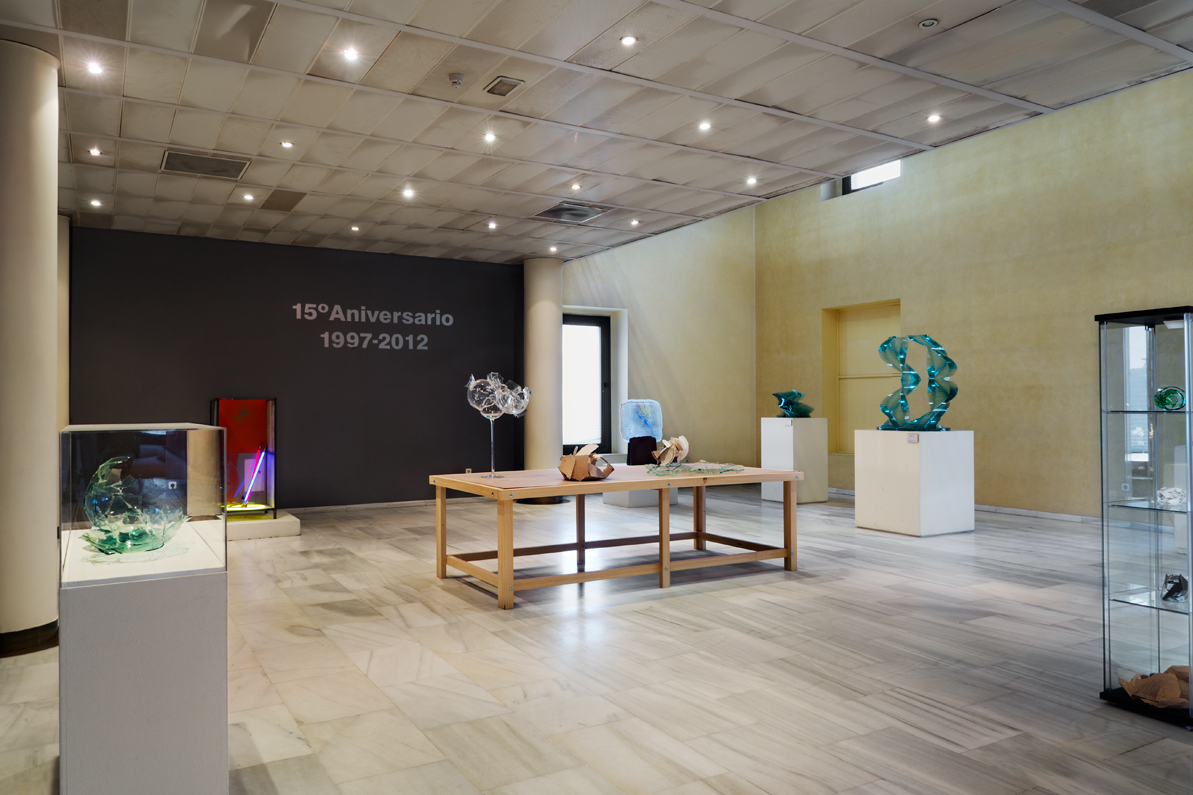 Pero la tendencia al ordenamiento que ofrecen las formas es pertinaz y parece querer jugar en contra del método y de la voluntad del escultor. Las antiguas formas de los utensilios rotos imponen los ángulos de encuentro, las líneas de pegado, asignan la configuración redonda de su superficie sobre la nueva copa tarada, inútil para verter, contener y beber vino, pero redonda. Las formas mantienen tozudas su complexión cóncava-convexa, rotas todas las simetrías, configuran una escultura en cuya forma general se mantienen las líneas esenciales que delatan su naturaleza esférica, no importa que sus pies de copa se lancen excéntricos al aire como orejas de gremlin a la escucha de alguna conversación, aunque ahora sea su mundo interior el que resuena en la campana y se transmite por el pie de la copa a quien quiera escucharla. El jarrón no podrá contener el agua que mantiene las flores frescas, pero sus formas disparatas, burladoras de la gravedad, con sus dibujos tallados en el cristal bien podrían presentarse como flores vítreas desarrollando complacidas la magnífica simetría de sus pétalos y estambres en ese obstinado sacrificio de simetrías que Evaristo Bellotti desencadena. Es cierto que, después de la catástrofe, ya no se trata de reconocer formas ni funciones de aquella anterior vida útil que tuvieron los cacharros de vidrio, cerámica o cartón, sino de observar que de la ruptura de un orden surgen otros órdenes, incluso, aunque, en el precario proceso de construcción haya mediado la aleatoriedad como sistema. Este nuevo orden que construyen las Fracciones está más próximo de la fluctuante naturaleza orgánica del mundo animal, que de la sustancia homogénea o de la cristalización geométrica del mundo mineral. Como los organismos vivos, estas esculturas parecen haberse generado por interacciones constructivas internas y autónomas, de modo que, su estructura parece no venir impuesta por la fuerza de ninguna acción exterior.